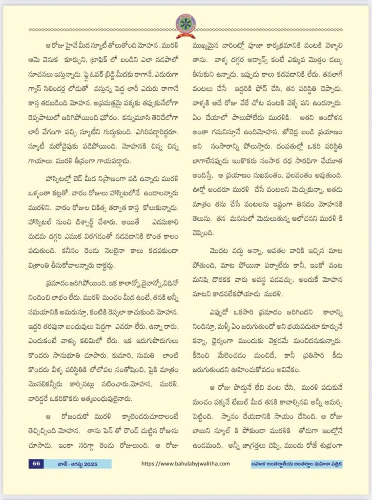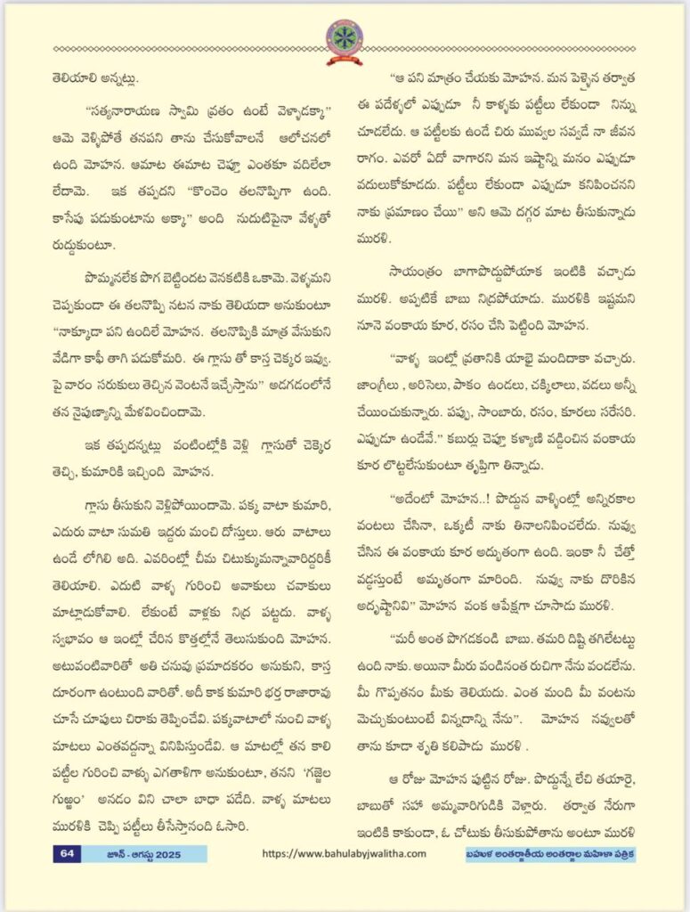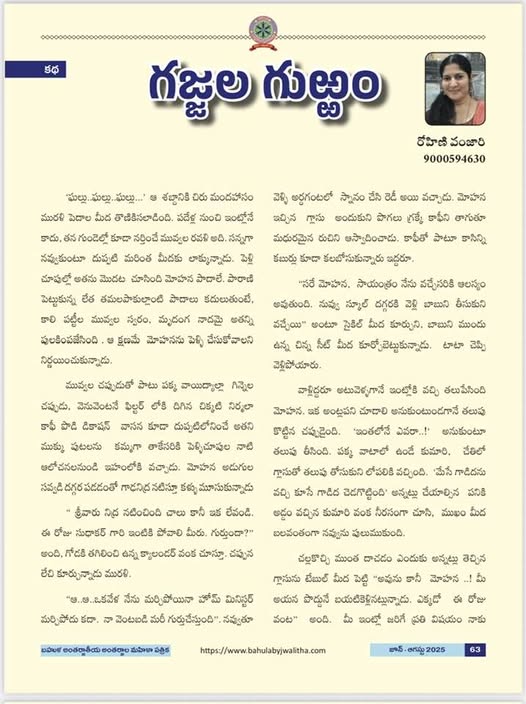 అన్యోన్యంగా సాగుతున్న కాపురంలో అనుకోని విపత్తు జరిగితే ఆ సంసారం ఏమైంది? ఈ త్రైమాసిక పత్రిక “బహుళ” లో “గజ్జల గుఱ్ఱం” కథ చదవండి. Jwalitha Denchanala మేడమ్ కి ధన్యవాదాలతో..